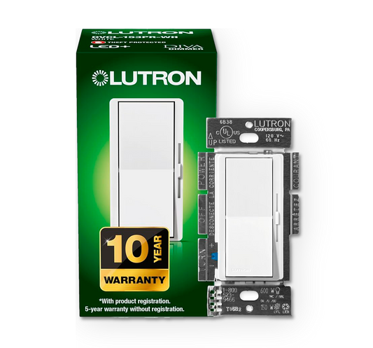 Lutron Diva LED+ Dimmer Switch for Dimmable LED/Halogen/Incandescent Bulbs, Single-Pole or 3-Way (White)