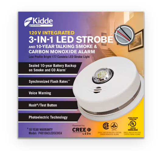Kidde Hardwire Interconnect 3-in-1 Smoke & CO Alarm with LED Strobe Light and 10-Year Battery Backup (P4010ACLEDSCOCA)